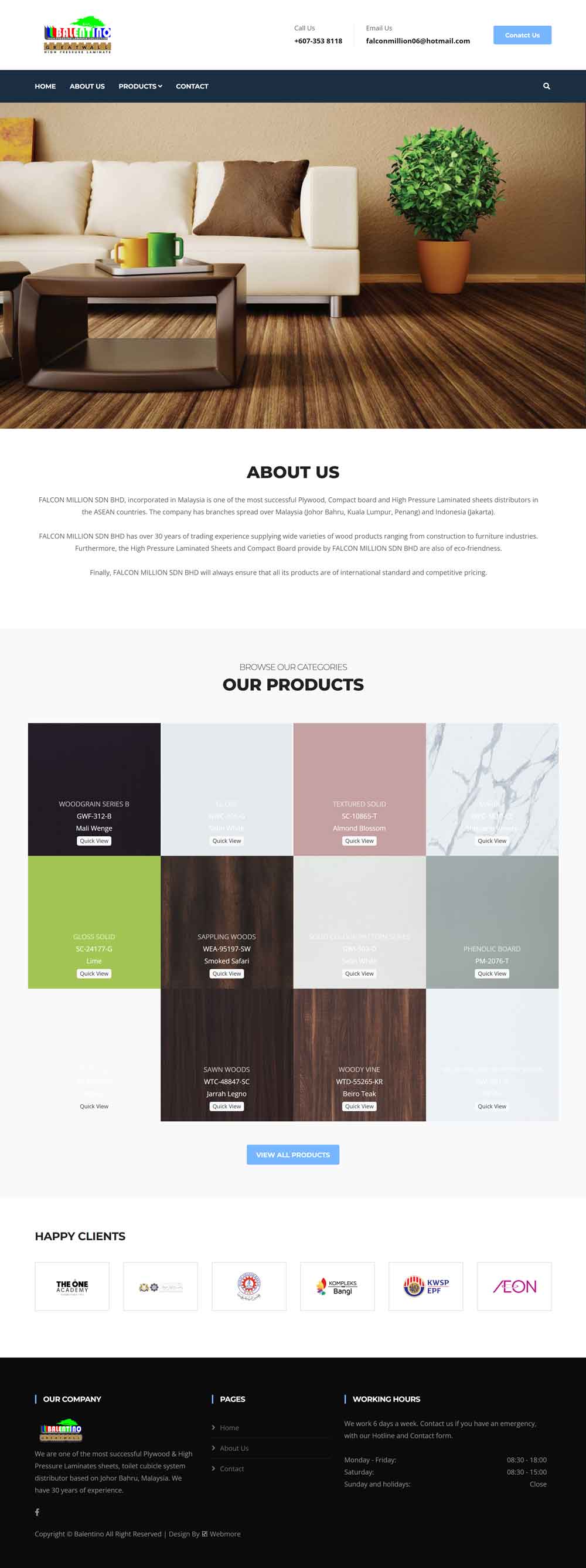 FALCON MILLION SDN BHD has over 30 years of trading experience supplying wide varieties of wood products ranging from construction to furniture industries. Furthermore, the High Pressure Laminated Sheets and Compact Board provide by FALCON MILLION SDN BHD are also of eco-friendness.